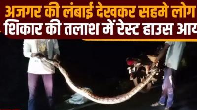 रेस्ट हाउस में घुसा विशाल अजगर: शिकार की तलाश में मचाया हड़कंप, रेस्क्यू के बाद दिखा भयावह रूप, उठाने में लगे दो लोग
