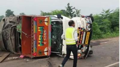 पटना में हाईवा ने पुलिस गाड़ी को मारी टक्कर, रेलिंग से टकराकर लगी आग