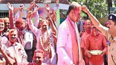 होली की हुड़दंग में रंगे दिखे बाबा बागेश्वर, छतरपुर में विदेशी मेहमान भी हुए रंगों में सराबोर