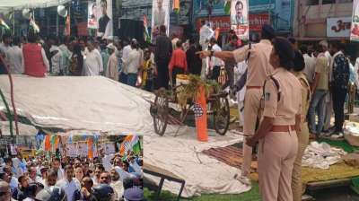 किसानों के मुद्दे पर कांग्रेस का प्रदर्शन, लेकिन मंच नहीं टिका, एक के बाद एक नेता गिरे