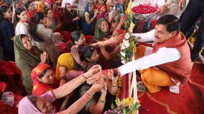 मोहन यादव ने बहनों से बंधवाई राखियां और गाना गाया
