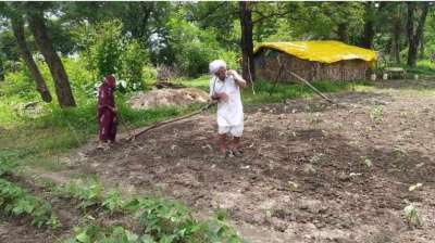 कृषि मंत्री के जिले में खेत जोतता बुजुर्ग किसान, तस्वीर ने उठाए कई सवाल
