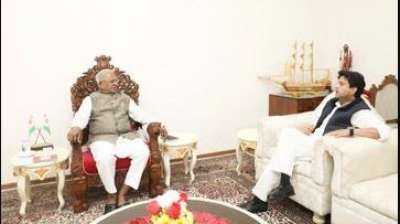 भोपाल । केंद्रीय संचार मंत्री और पूर्वोत्तर क्षेत्र विकास मंत्री श्री ज्योतिरादित्य सिंधिया ने आज राजधानी आगमन पर पूर्व गृह मंत्री डॉ नरोत्तम मिश्रा से निवास पर सौजन्य भेट की।...