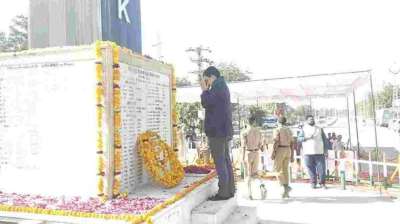 समारोहपूर्वक मनाया विजय दिवस,शहीद स्मारक पर पुष्प चक्र अर्पित किए गए
