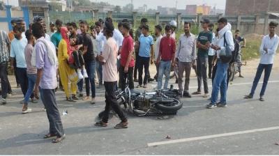 रोडवेज बस ने बाइक सवार को टक्कर मारी..........पति-पत्नी की मौत