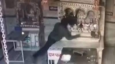 बेखौफ चोर का कारनामा, मंदिर से चांदी का छत्र ले भागा