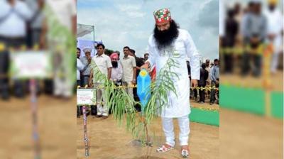 हरियाली के लिए एक साथ कदम: बाबा और हनीप्रीत ने मिलकर लगाई पौधा"