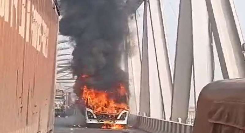 पटना के महात्मा गांधी सेतु पर बस में लगी भीषण आग, यात्रियों ने कूदकर बचाई जान