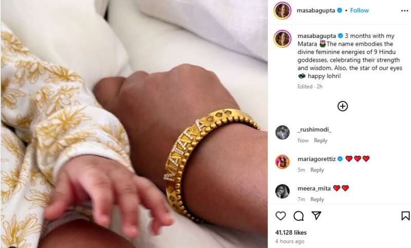 फोटो में मसाबा ने एक सोने का कंगन पहना हुआ है, जिस पर 'मतारा' लिखा है. उन्होंने इस तस्वीर के साथ लिखा कि वे अपनी 'मतारा' के साथ तीन महीने पूरे कर चुकी हैं. 'मतारा' नाम का मतलब उन्होंने 9 हिंदू देवियों की दिव्य स्त्री ऊर्जा से जोड़ा, जो शक्ति और ज्ञान का प्रतीक है. उन्होंने इसे अपनी बेटी के लिए इस्तेमाल करते हुए उसे अपनी आंखों का तारा बताया. वहीं, उनकी बेटी का नाम और उसका मतलब जानने के बाद फैंस भी अपनी खुशी जाहिर कर रहे हैं.