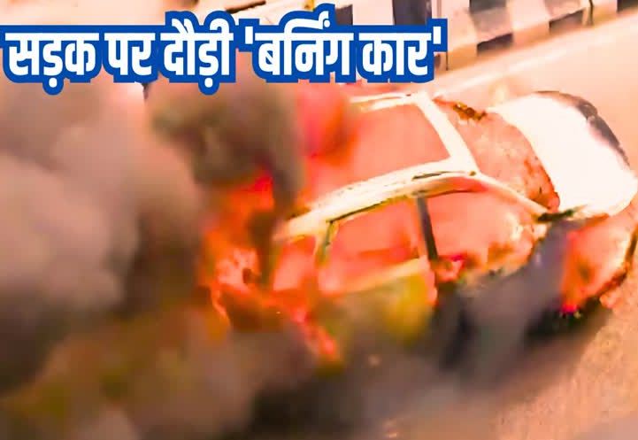 हाईवे पर दौड़ी ‘द बर्निंग कार’, मचा हडक़ंप, चालक की समझदारी से टली बड़ी दुर्घटना