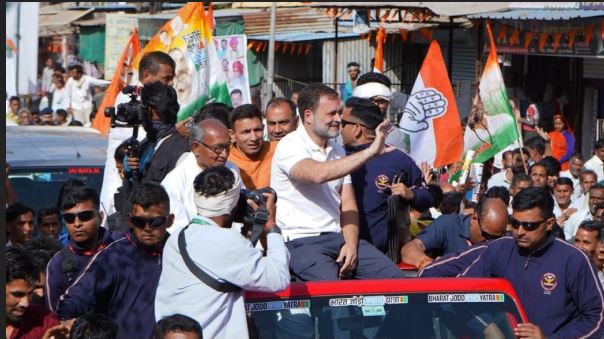 जनता के बीच राहुल गांधी, खुली जीप में निकाला भव्य रोड शो