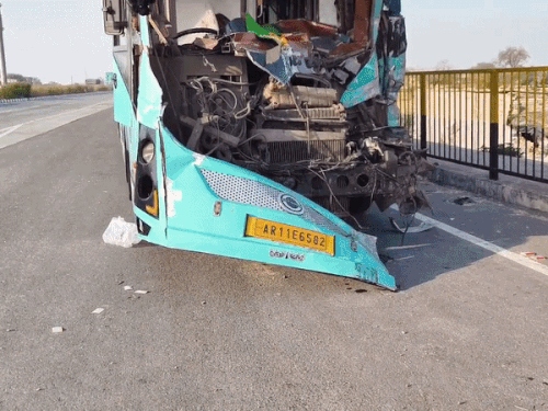 तेज रफ्तार ट्रक का कहर, निजी बस से भिड़ंत में 13 घायल