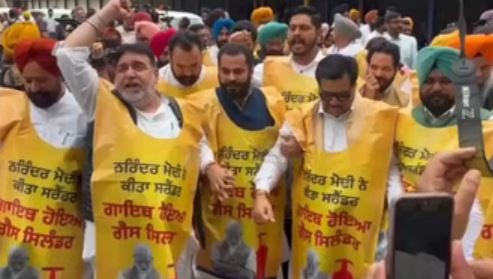 एलपीजी गैस के संकट को लेकर आप विधायकों ने वेल में आकर प्रदर्शन किया। हंगामे के चलते सदन को 20 मिनट के लिए स्थगित कर दिया गया। चीमा ने कहा कि प्रधानमंत्री की विदेश नीति फेल हो रही है। वे विदेश दौरे करके आते हैं लेकिन देश को इस तरह के संकट में झोंक दिया है। पीएम ने देश को बर्बाद करने का काम किया है। सबसे ज्यादा महंगाई बढ़ रही है। स्पीकर ने कहा कि पता नहीं केंद्र पर कौनसा दबाव था कि आज एलपीजी सिलिंडर नहीं मिल रहे हैं। पता नहीं कौनसी मजबूरी थी कि अमेरिका से तेल खरीदने का फैसला लिया।