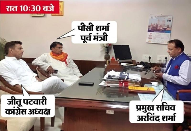 दरअसल कांग्रे अध्यक्ष जीतू पटवारी रात में 10 बजे अचानक विधानसभा सचिवालय पहुंच गए. उनके यहां पहुंचने से हड़कंप मच गया. उन्होंने एक वीडियो भी जारी किया है जिसमें वह विधानसभा के मुख्य सचिव के कमरे में जाते हुए नजर आते हैं. कमरे में मुख्य सचिव के सामने विधायक पीसी शर्मा पहले से ही बैठे हुए थे. जैसे ही इस कमरे में जीतू पटवारी पहुंचे तो उन्होंने विधानसभा के मुख्य सचिव से पूछा.