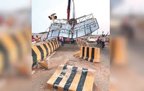 भारत जोड़ो सेतु वाहन की टक्कर से गिरे साइनेज