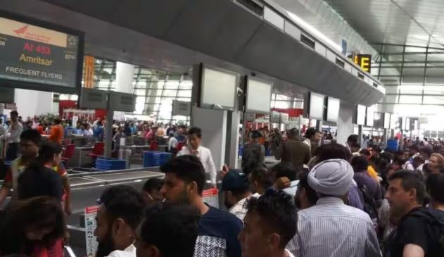 इंदिरा गांधी अंतरराष्ट्रीय एयरपोर्ट पर यात्रियों की भीड़ और तनाव
