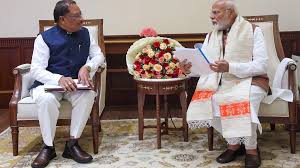 रायपुर|छत्तीसगढ़ के मुख्यमंत्री विष्णुदेव साय ने आज प्रधानमंत्री नरेंद्र मोदी से मुलाकात कर बस्तर के भविष्य की एक नई तस्वीर पेश की. इस मुलाकात में मुख्यमंत्री ने न केवल नक्सलवाद के अंत के बाद प्रदेश में आई शांति के लिए प्रधानमंत्री का आभार जताया, बल्कि बस्तर के समग्र विकास का एक विस्तृत और दूरदर्शी ब्लूप्रिंट भी सौंपा. साथ ही उन्होंने प्रधानमंत्री को मानसून के बाद बस्तर आने का आमंत्रण दिया, जहां उनकी मौजूदगी में कई बड़ी परियोजनाओं का शिलान्यास और लोकार्पण प्रस्तावित है|
