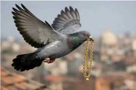 चोंच में दबाकर उड़ गया कबूतर