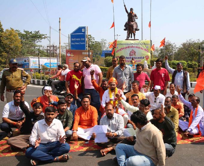 भोपाल। राजधानी भोपाल में बुधवार दोपहर लिंक रोड नंबर-1 पर छत्रपति शिवाजी जन्मोत्सव के कार्यक्रम के दौरान टीटी नगर तहसीलदार कुणाल राउत द्वारा साउंड सिस्टम का माइक बंद कराने की बात को लेकर हंगामा हो गया। इससे गुस्साए लोग शिवाजी की प्रतिमा के सामने ही धरने पर बैठ गए। बाद में टीटी नगर तहसीलदार कुणाल राउत के प्रतिमा के सामने ही माफी मांगने के बाद विवाद शांत हो गया। बीजेपी पार्षद पप्पू विलास घाड़गे ने बताया, रेडक्रॉस अस्पताल के पास चौराहे पर छत्रपति शिवाजी महाराज की प्रतिमा स्थापित है। यहां 19 फरवरी को जन्मोत्सव कार्यक्रम करते हैं। बुधवार को भी कार्यक्रम रखा गया था। इस दौरान तहसीलदार आए और साउंड सिस्टम-टेंट हटा दिया। गुस्साए लोगो ने धरना देते हुए तहसीलदार के खिलाफ नारेबाजी करनी शुरु कर दी। सूचना मिलने पर पुलिस मौके पर पहुंची और ट्रैफिक डायवर्ट कर दिया। वहीं तहसीलदार भी मौके पर पहुंचे और आक्रोशित लोगो को समझाइश देते हुए प्रतिमा के सामने माफी मांगी। इसके बाद विवाद शांत हो गया। मामले में तहसीलदार ने कहा कि साउंड सिस्टम या कार्यक्रम की अनुमति नहीं थी। मैं सिर्फ साउंड सिस्टम बंद करने को कहा था। समाजजनों को कोई गलतफहमी हो गई थी। मेरा गलत उद्देश्य नहीं था। समाजजनों के कहने पर मैंने शिवाजी महाराज से माफी भी मांग ली।