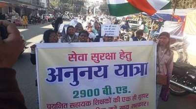 शिक्षकों का मार्च पहुंचा कटघोरा, सरकार से की नौकरी बचाने की अपील