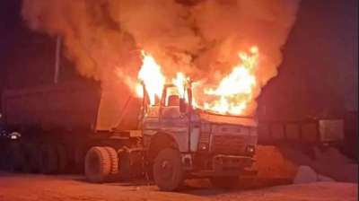 कुसमुंडा खदान के बैरियर में लगी भीषण आग