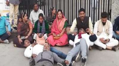 कोटा में पक्षपात का आरोप लगाते हुए कांग्रेस पार्षदों ने दिया धरना