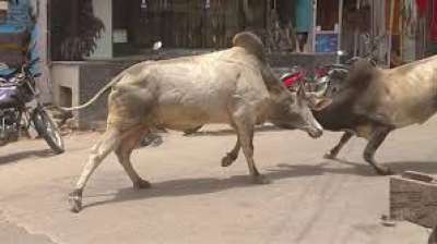 भरतपुर । भरतपुर के नदबई में सुनार गली में रात को दो आवारा सांडों में बाजार में लड़ाई हो गई जिसमें एक सांड सीढ़ियों से होकर एक घर में छत...
