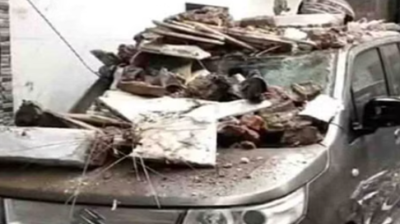 बारिश में गिरा मकान का छज्जा, नीचे खड़ी कार हुई चकनाचू