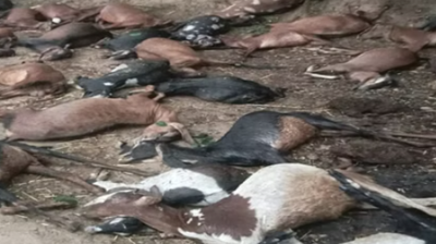 आकाशीय बिजली गिरने से 50 बकरियों की हुई मौत, सरकार से की आर्थिक सहायता की मांग