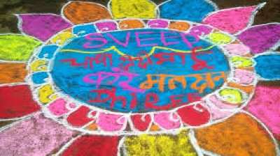 रंगोली बनाकर किया जा रहा मतदान के लिए प्रेरित