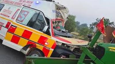 जयपुर सड़क हादसा: पलटी एम्बुलेंस, चार लोग गंभीर घायल