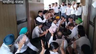 होशियारपुर में वकीलों का प्रदर्शन, एएलसी को ऑफिस से निकलने नहीं दिया