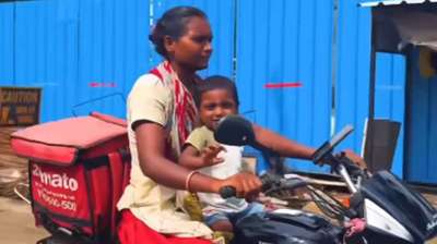 मां की मेहनत: बेटे को बाइक पर बिठाकर करती है घर-घर फूड डिलीवरी