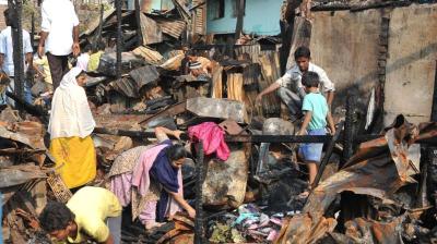 आग की लपटों में घिरी बस्ती, 25 झोपड़ियां जलकर खाक